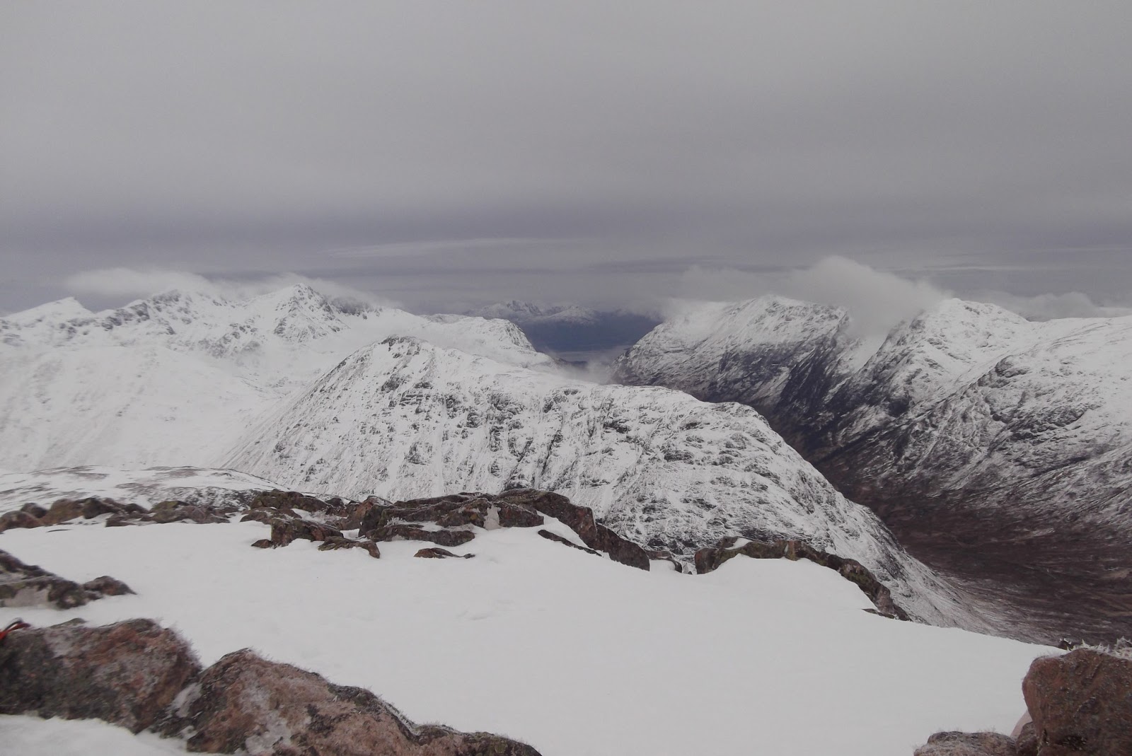 For the past 4 days I have been working with Steve, helping him get some preparation done for his up coming trip to Denali. We started off with some basic winter skills introduction on the first day in and around the gultch area, Ben Nevis. This saw Steve using an ice axe and wearing crampons for the very first time. After a mini journey over varying terrain including soft, wet slushy snow, rock and ice and discussing the differences between terrain types and footwork techniques, we focused on the use of a general mountaineering axe, looking at general use and purpose before eventually moving on to the emergency use of the axe to both prevent a slip turning into a fall, and then to arrest a fall. The next day Steve put these newly learned skills into practise taking in his first ever Munro, Stob Dubh, on Buachaille Etive Beag. As well as practising and developing the techniques learned on the previous day, a low, claggy cloud base provided a good environment to look at and practise some navigation in mountainous environments. Day 3 started a bit later, giving the feet a break we decided to head to the indoor wall and do an introductory climbing day. We worked on tying into a harness, belaying and lowering climbers on bottom rope indoor walls, even touched on some basic indoor abseiling! Day 4 was summit day, and the route chosen was Ledge Route II, which was in very nice condition and offered amazing views. After topping out on the Summit, we descended via No4 Gully and had a leisurely walk back down to the top car park. A great few days in which Steve learned a lot and proved himself capable of his future aspirations, well done Steve!